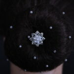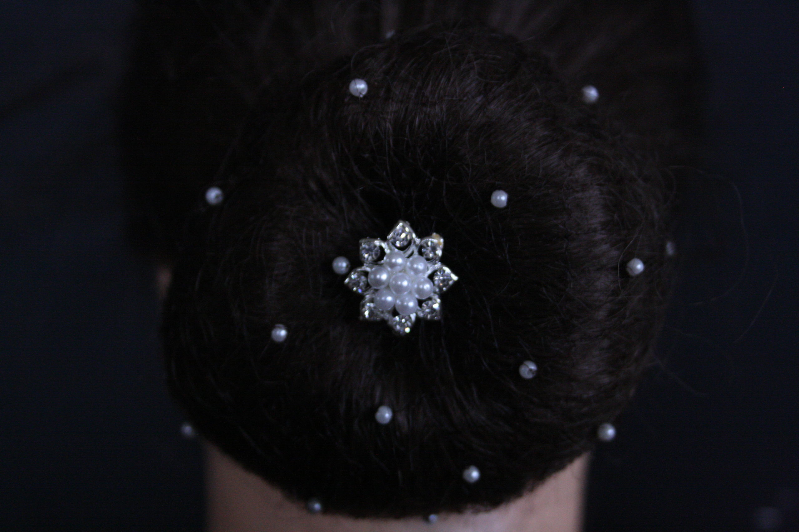 Luxe haarnetje donker met zwart parel en crystal aantal