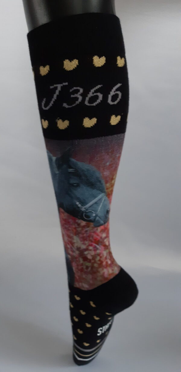 Voor de sok hebben wij een originele foto van Jasper gebruikt. De sok is o.a. ook voorzien van een typisch Fries symbool?n.l. de Pompebl?d?speciaal voor Jasper 366 in het goud.