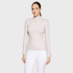 De Samshield Lidia damestrui is een stijlvol en functioneel kledingstuk ontworpen voor paardenliefhebbers. Deze trui is gemaakt van een mix van hoogwaardige materialen en biedt comfort en duurzaamheid voor zowel casual als sportkleding. De aandacht voor detail van de trui, zoals het fijne functionele, het Samshield Swarovski Crystal-logo en Swarovski details op voorpand van de trui en de mouwen. Een trui met hoogwaardige afwerking, toont de implementatie van Samshield aan beide mode als prestaties. Of je hem nu in de stal draagt ??of als casual in de vrije tijd, de Samshield FW25 Lidia Ruffle