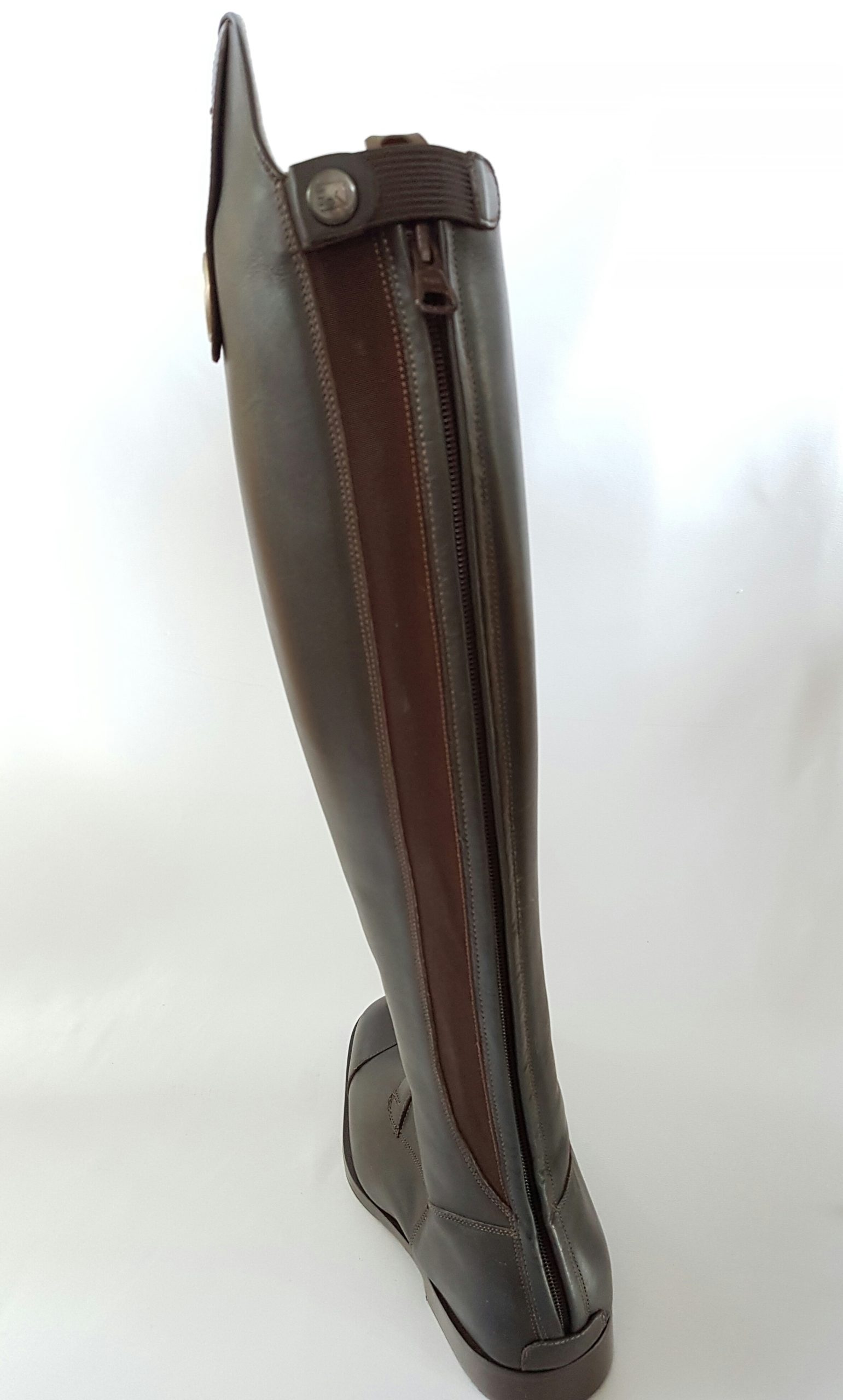De Niro Boot ? TricoloreModel Tricolore is het instap model van De Niro Boots. De Tricolore rijlaars is gemaakt van mooi rundleder en wordt geproduceerd in Itali?. De rijlaars is geheel gemaakt van rundleder. Aan de voorzijde veters op de wreef en aan de achterzijde een rits met aan de zijkanten elastiek. Hierdoor heeft de Tricolore rijlaars een erg mooie pasvorm.