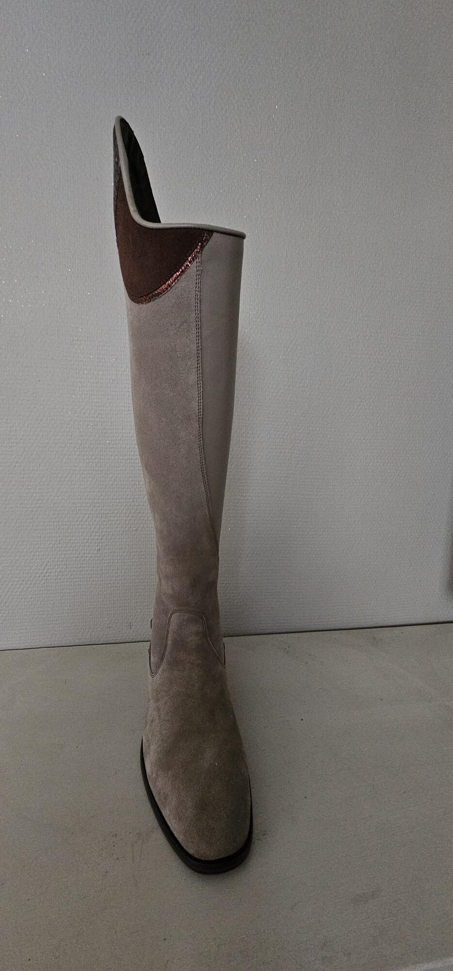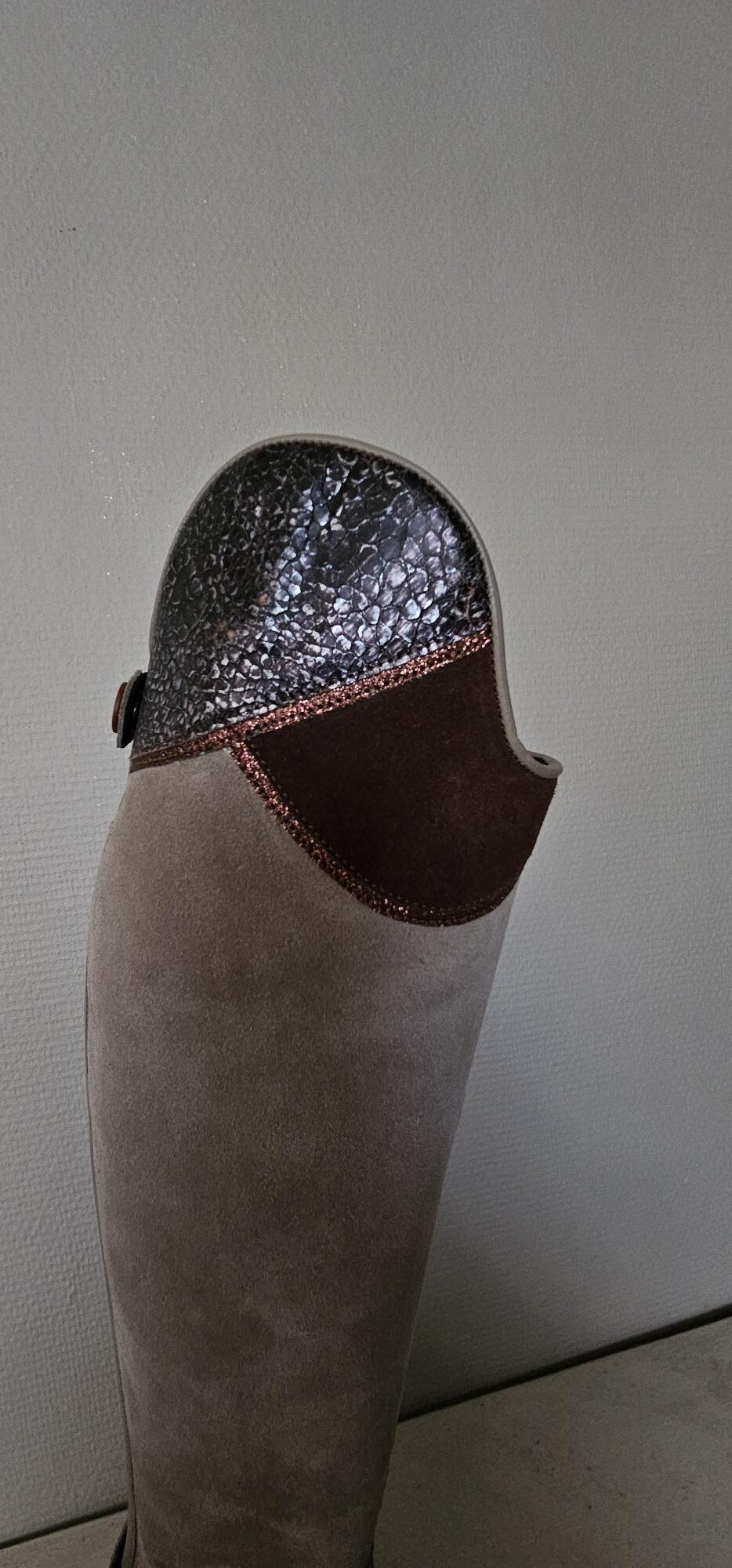 Prachtige suede laars met speciale leren top