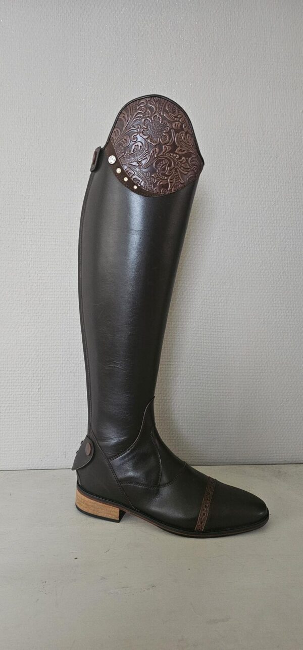De hoogte van de rijlaarzen zijn aan de achterkant laars gemeten vanaf bovenkant hak dus alleen het leergedeelte 48,8 cm