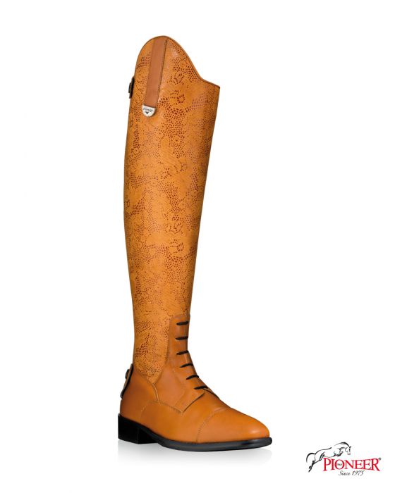 Deze prachtige rijlaars met luxe details is van hoge kwaliteit kalfsleder gemaakt. Ook de binnenvoering is van kalfsleder, waardoor je close contact met je paard ervaart. Langs de rits is een baan elastiek geplaatst deze kan voor kleine meerprijs weggelaten worden. De lederen zool zorgt voor extra souplesse van de laars en daarnaast zorgt de gel-binnenzool voor optimaal draagcomfort en vermindert koude voeten. De perfecte laars voor de serieuze ruiter/amazone die kiest voor kwaliteit!